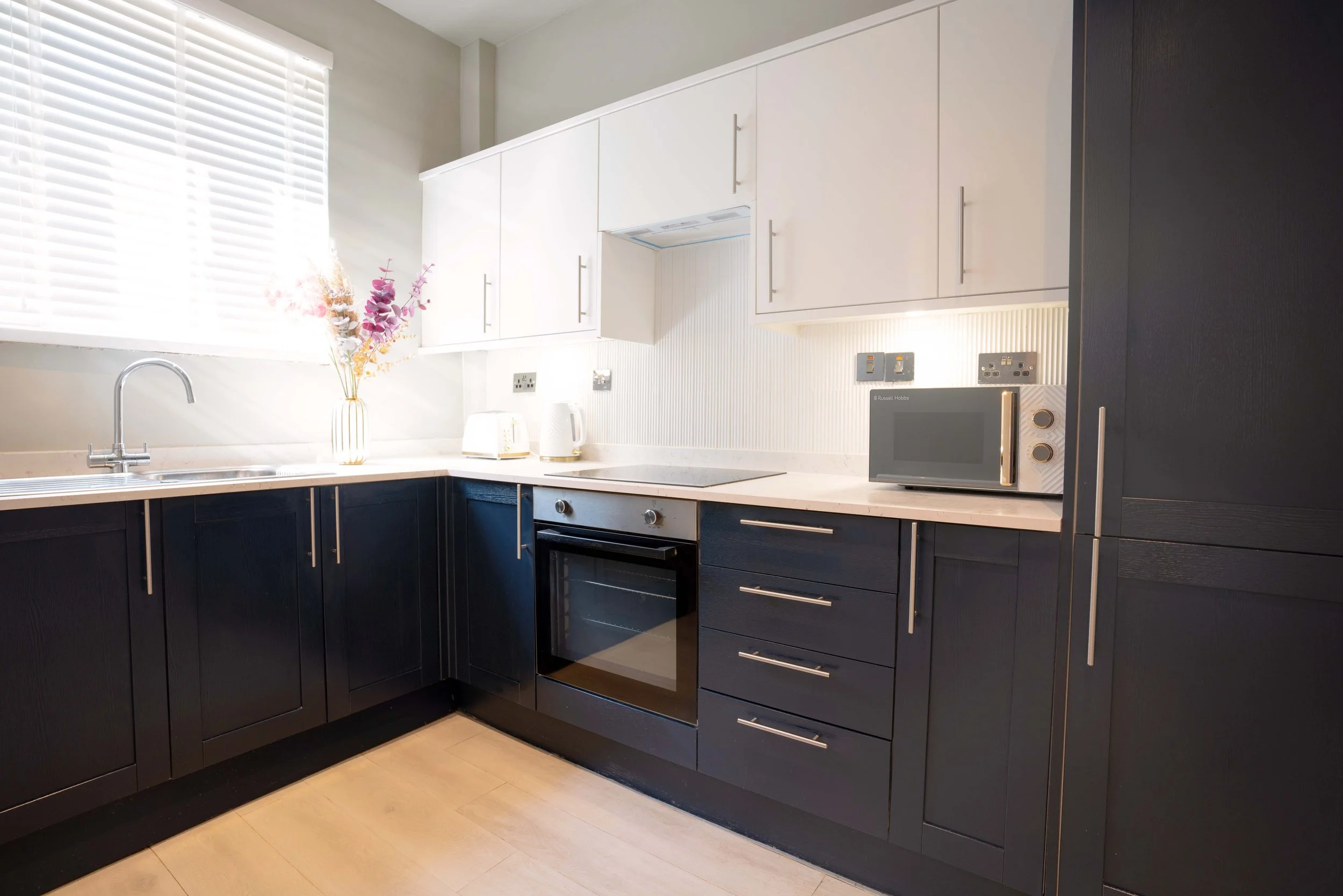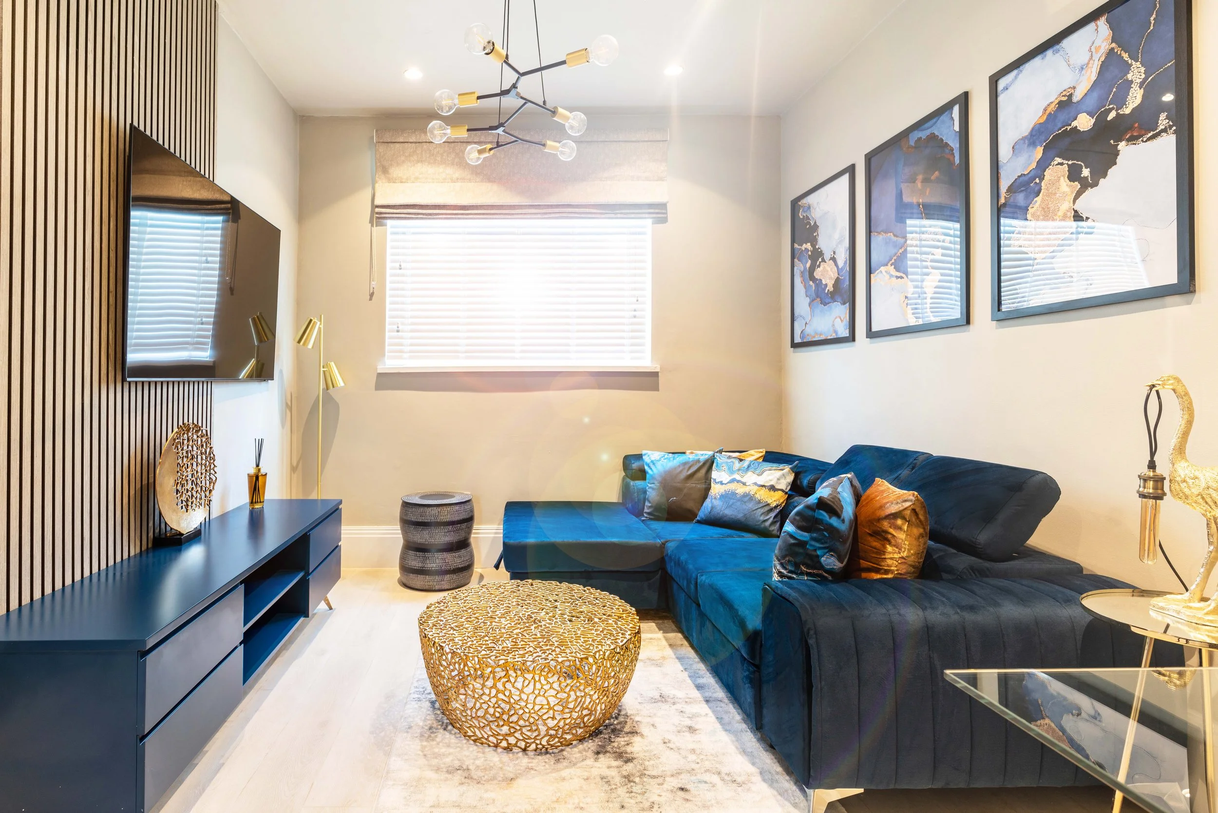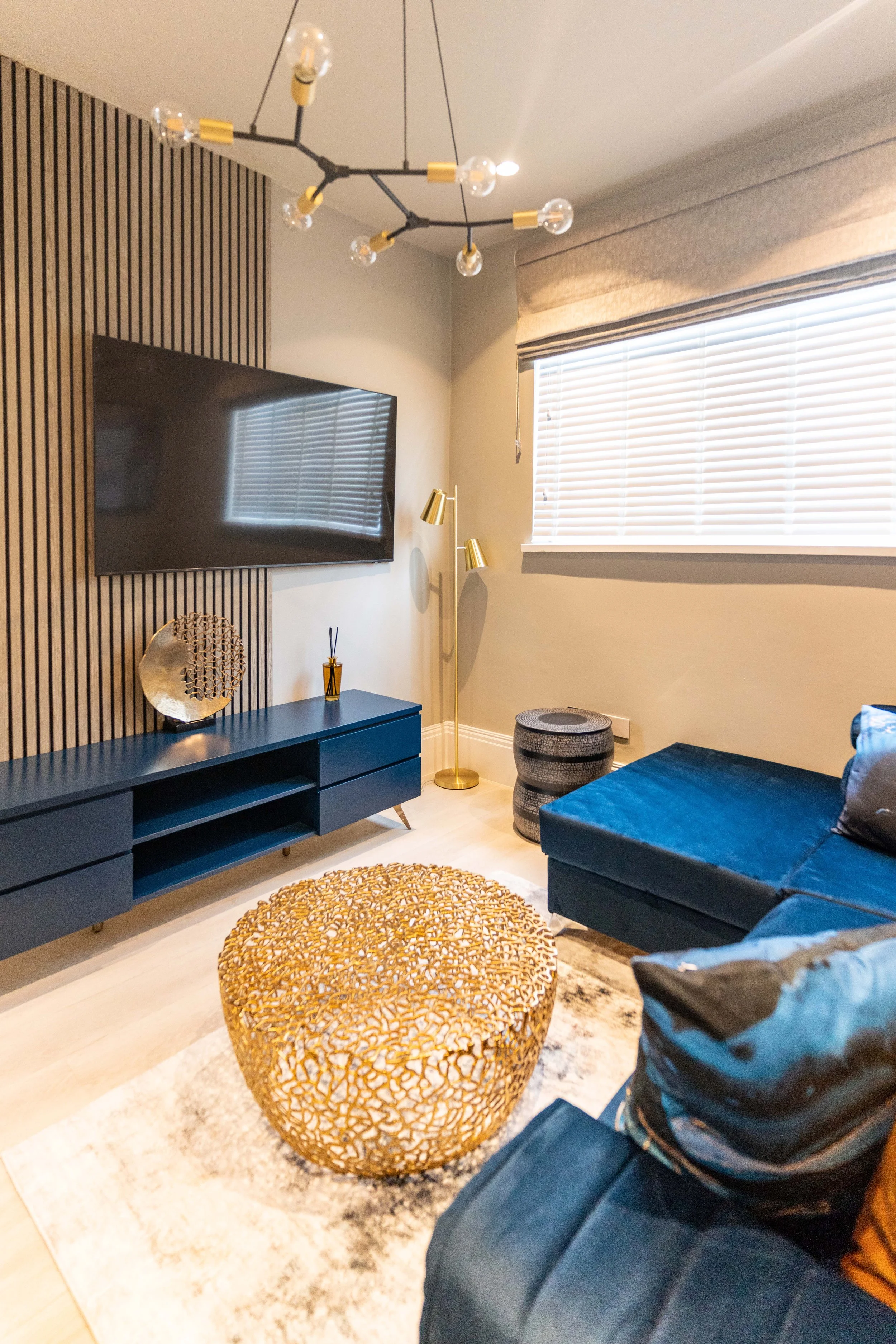 Finished to an exceptional standard throughout by an award-winning interior designer, the apartment offers contemporary living ideal for first-time buyers, professionals, or investors. At its heart is a stylish lounge featuring a 55" smart TV and kickback sofa — perfect for relaxing or entertaining. A spacious double bedroom with ample storage, a sleek fitted kitchen, and a modern bathroom complete the home.